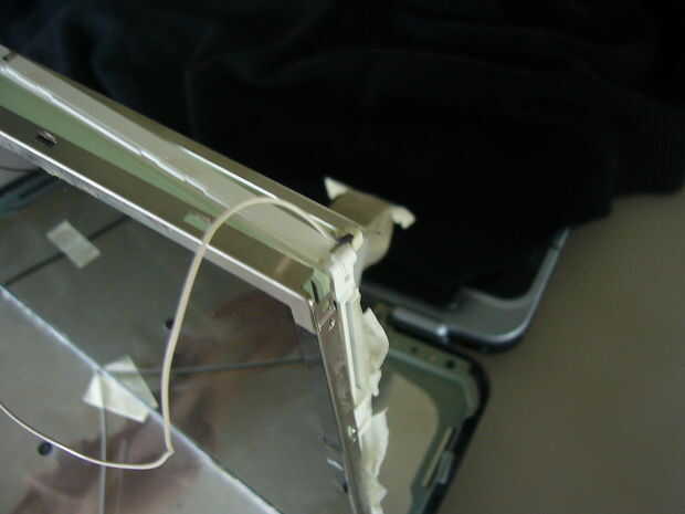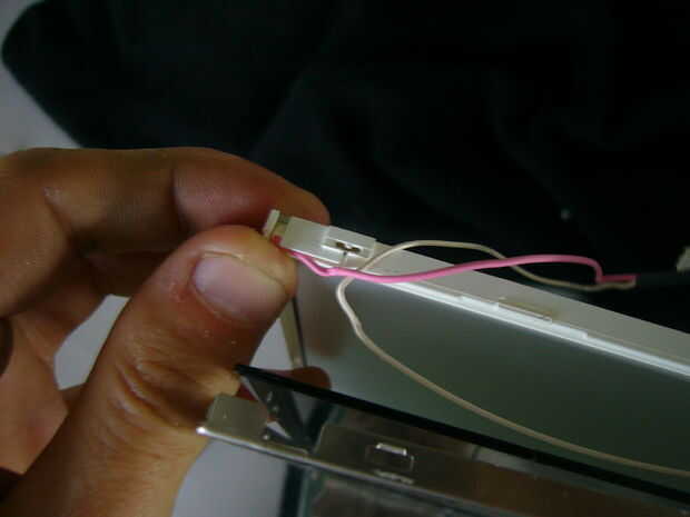 Ahora, tire el conjunto del reflector hacia fuera mientras levanta el plástico portador lejos. Ser suave como la luz trasera es en realidad un pequeño tubo fluorescente - y contiene vapor de mercurio.