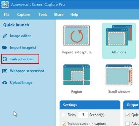 Después de que ha instalado en su PC, ábralo. Verá a "Programador de tareas" en la parte derecha de su interfaz. Haga clic en esta opción para hacer un programa de captura de pantalla.