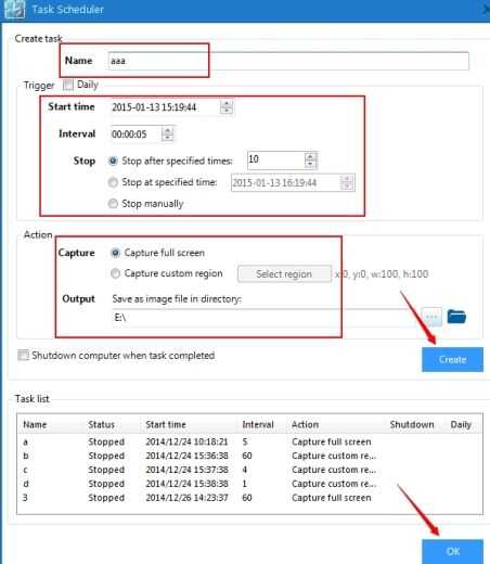 2. a continuación, haga clic en "Crear" para validar ese horario de captura de pantalla.