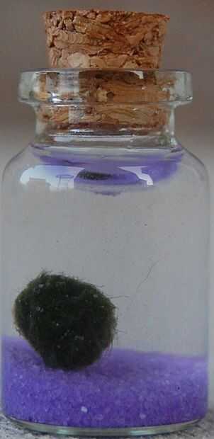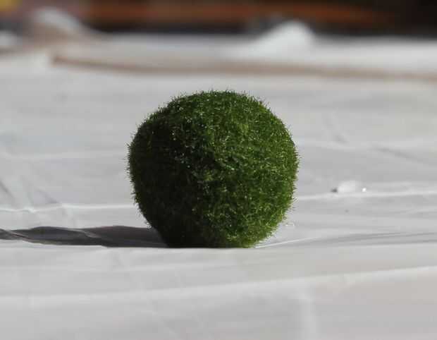 Una bola de marimo es una forma rara de crecimiento de algas, que crece en grandes bolas de verdes con un suave, aterciopelado appearance.they son nativos de Japón donde crecen naturalmente en el lago Akan. También se encuentran en Islandia, Estonia y Escocia. Pueden crecer los parches en un piso de lago a profundidades de 2 a 2.5 m. La forma redonda de la marimo es mantenida por acción de las olas que la convierte.