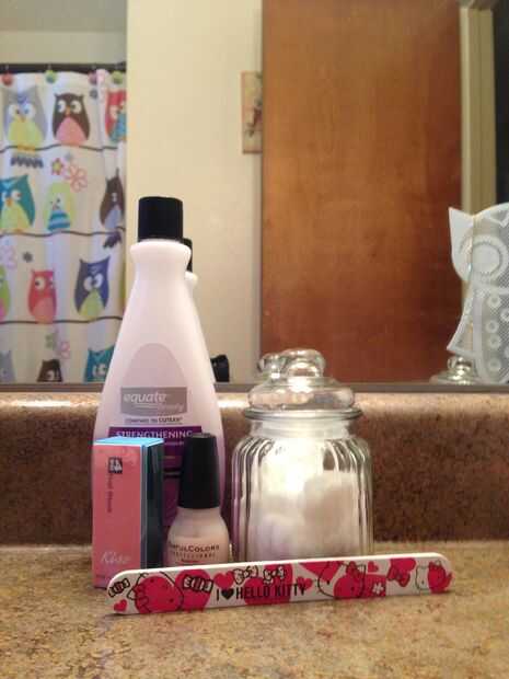 Lo que necesitará: removedor de esmalte de uñas (si tienes esmalte de uñas en!.) bola de algodón para quitar el esmalte de uñas un bloque de clavos de 4 vías una lima de uñas y una base de la capa o endurecedor de uñas.