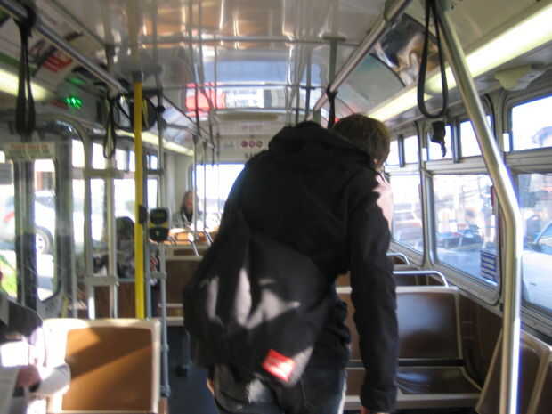 Si se pone de pie, Agárrate. Autobuses realmente hacen esas "paradas repentinas" advierten que puede que sea necesario. Tratar de evitar la respiración derecha al rostro de otra persona, o tomar un poste entero o anulación de gente con maletas que están sentados (mantenerlos entre los pies de un lugar seguro, ahorro de espacio). Y en serio, vale la pena repetir: HOLD ON. Puede afectar a personas, incluyéndote a ti mismo, cuando vaya volando sobre. También es simplemente vergonzoso.