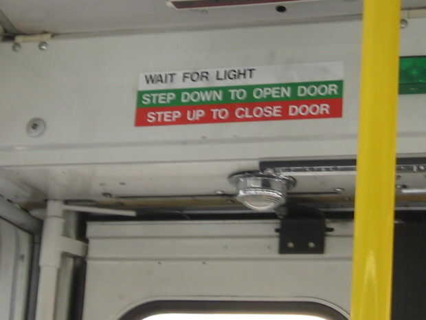 Una vez las paradas de autobús, bajarse a través de las puertas en la parte posterior. (Recuerda lo molesto fue cuando todo el mundo estaba bajando a través de las puertas delanteras cuando estaban tratando de conseguir en?) Para abrir las puertas, bajar por las escaleras o empuje en la barra que dice "Empujar para abrir". Si por alguna razón que sensor no está funcionando, usted siempre puede decir en voz alta, "Puerta de atrás!" y el conductor les abrirá para usted.