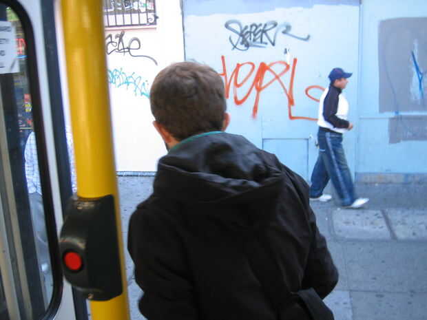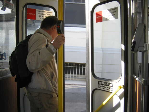 Para solicitar una parada mientras que en el autobús, tire del cable que va a lo largo de todas las ventanas. Usted debe oír un ding electrónico y se encenderá el vuelo dejar solicitud en la parte delantera del autobús. Asegúrese de tirar del cable de por lo menos 50 pies antes de la parada o el buzo puede preguntarle, "¿me parezco a Goddamned leer la mente?" (Él es realmente hacia fuera allí. Ten cuidado.)