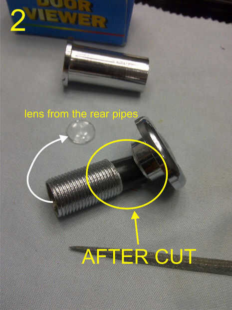 Paso 1 y 2: cortar la parte final del espectador de la puerta y saque la lente.