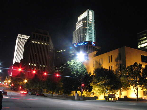 (muestra foto tomada a ISO 400, 6/10 de segundo, sin trípode, del horizonte céntrico de Omaha)