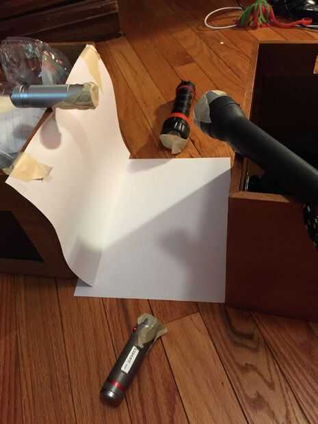 Primero en un pedazo de papel y su primer compartimiento al lado de la cinta de enmascarar de uso para grabar su segunda pieza de papel a la papelera. Después su segunda camioneta enfrente de entonces y establecidas de linterna en los cuatro lados del papel. Finalmente configurar el stick selfie hacia el objeto. Apagar las luces enciende su linterna y listo tu foto!