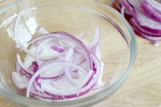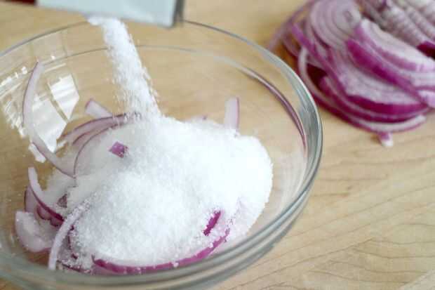 Si usted está haciendo un plato que requiere una cebolla un poco más suave (como una ensalada de col rizada), enterrar sus rebanadas crudas en sal y dejar reposar durante al menos 10 minutos, puede ser más.