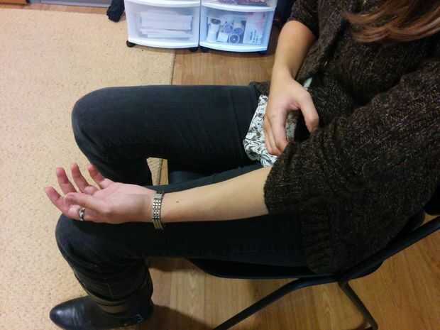 • Tienen su pareja relajarse y un brazo, la palma, en su regazo.