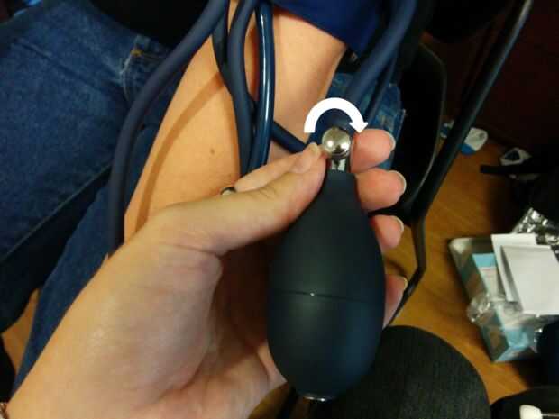 • Seguir apretando hasta que el manómetro lee entre 160 y 180 mmHg.