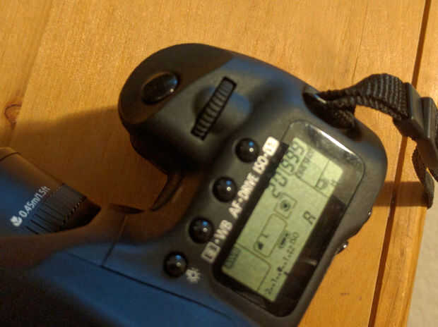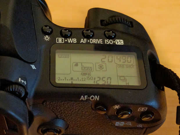 Ajuste de la abertura sobre la marcha se hace más fácilmente girando la rueda de desplazamiento al lado del botón de gatillo de liberación. Los ajustes pueden verse a través de la esquina superior derecha de la pantalla más pequeña en la parte superior de la cámara o bien a través del visor. Ya que estamos en modo de prioridad de apertura, te darás cuenta que la cámara automáticamente determina la velocidad de obturación más adecuada (el número a la izquierda con las comillas).