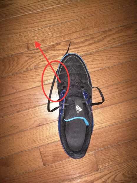 En cuanto a la situación de contacto con el zapato y la dirección de patear el cuadro a continuación da alguna información. La parte del zapato que está en el círculo rojo debería ser el área que hace contacto con el balón. Después de hacer contacto, el pie debe seguir a través en la dirección de la flecha (en relación con el zapato). Esto está moviendo su pie a través de la bola, para generar el giro y la bola como para generar energía.