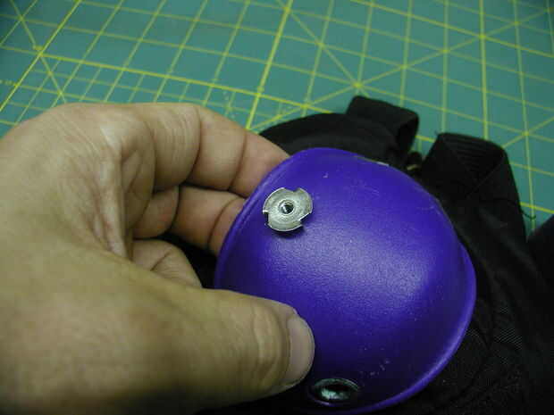 La blindnut en su lugar por debajo de la rodilla de plástico con 5 minutos o GorillaGlue Asegúrese de que no hay pegamento se mete en los hilos de la blindnut si el blindnut sobresale hacia fuera por encima del plástico del pegamento, utilice una herramienta de corte que quede al ras con la superficie.