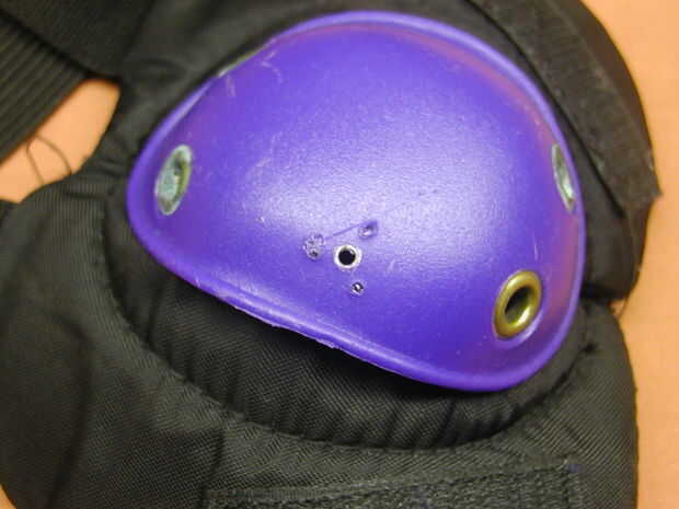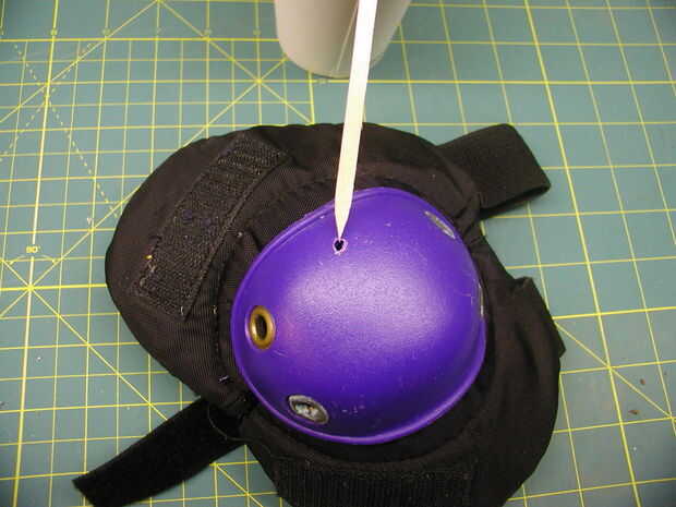 Perfore un agujero de 3/16 aprox. 1/2 pulgada desde la parte superior de la almohadilla. Para conseguir el efecto apropiado, la flecha tiene que armar un poco de la horizontal. Habrá algunos caer así por lo que es importante localizar el agujero arriba en el teclado.