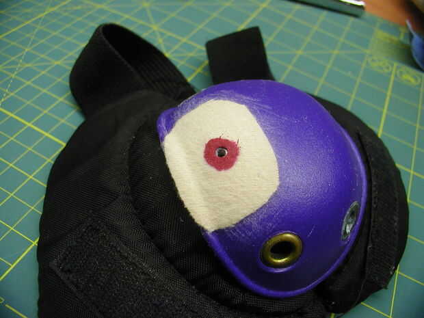 Cortar un trozo de fieltro con pegajoso, hacer un pequeño agujero en él y adjúntelo a la almohadilla sobre la rosca. Usando el pulimento de clavo rojo oscuro, pintar alrededor del agujero. Tenga cuidado de no conseguir pintura en las roscas. Probar su rosca atornillando el tornillo 6-32 en el blindnut. No se debe atar y atornillar fácilmente.