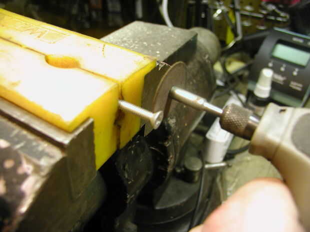 Cortar la cabeza del tornillo con una herramienta de corte y entonces prueba ajustarla en la flecha (por esta razón la flecha tiene que ser hueco). Si no está ajustada, envuelva algún algodón o Kevlar hilo alrededor de él.