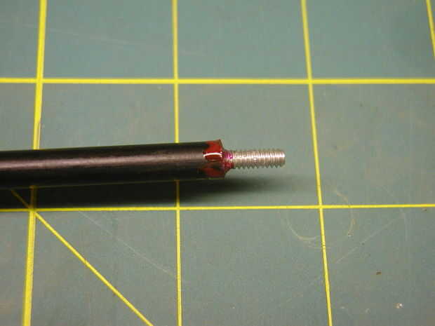 Una vez que haya curado el pegamento y la pintura, prueba de ajuste la flecha atornillándolo en la rodillera. Asegúrese de que se enrosca fácilmente y no enlazar
