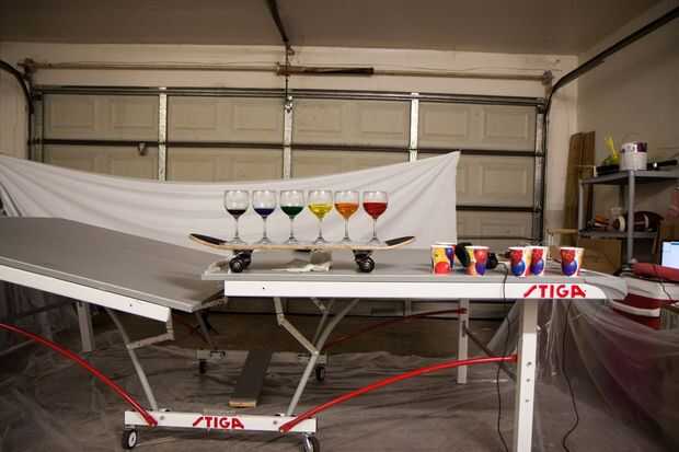 Preparar la mesa (tengo directrices no reales de cómo lograrían esto), pero si estás usando la tapa de la pintura, es en el piso antes de colocar la tabla.