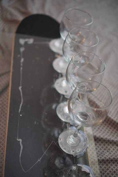 A continuación, los cristales ellos mismos. Quiere pegar en la parte inferior y alrededor de los bordes en la parte posterior de la glass(see picture). Otra vez ayuda a la parte inferior del vidrio de la arena (tenga cuidado, 'arena de vidrio' puede ser peligrosa). Tiene sentido pegar 1 vidrio de allí saltar al inicio de párrafo con 'test' y compruebe para ver si puede soportar la cantidad de fuerza que va a pasar. Al pegar, asegúrese de uniformemente espacio hacia fuera y se alinean perfectamente como sea posible.