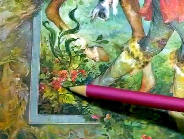 El punto más importante es que si queremos llevar a cabo esta técnica gouache, el color que viene debajo de flores y hojas, si más adelante quisiéramos estupendo hecho por los colores verdes y rojo, se combinan con color y suciedad el color y no podemos hacerlo por Aguada. Porque Aguada será claro por el agua, así que trabajamos con colores como el acrílico. Diferentes partes del cuadro trabajaban con acrílico color, como colores en ciprés y en estructuras que está debajo de estas flores y todas las partes del cuadro trabajado con acrílico. (Figura 2)
