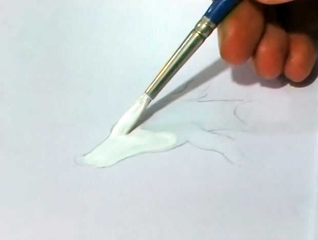 Puede trabajar en oídos más adelante porque son independientes. Los golpes de su pincel de acrílico deben ser muy pequeño y corto hasta que el rastro del pincel no queda en la superficie. Mientras se trabaja, si sus colores se hinchan, no asustar a poner el color en la superficie, ya que cuando el color de acrílico seca será sedimento. Si observas cuidadosamente en el modelo que estoy trabajando en él, el color blanco es nuestro bajo color. (Figura 6)