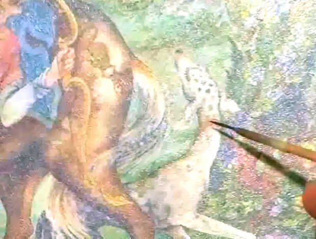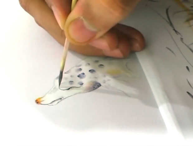 Se puede comparar parte pintada con esa parte que se ve en el cuadro. Como te dije antes en artículos anteriores, si el bajo color era el mismo que el principio de uno, se puede hacer super y pardaz. Comenzamos a pardaz. No hay ninguna diferencia entre pardaz en este trabajo con el trabajo previo, intente utilizar acrílico en pardaz debido a su calidad, claridad y rendimiento. En esta parte hacemos pardaz y nos hacemos construcción sobre cabeza de animal, de la punta de la nariz y debajo de los ojos. (Figura 13)