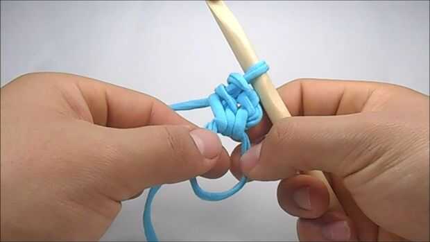 Para empezar el Medio ganchillo doble, debemos tener dos cadenas para dar la necesaria altura de la primera puntada de la ronda