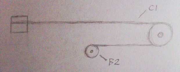 Esta es una imagen de la bobina (B2) y la leña elástico (C1) y cómo el elástico se envuelve alrededor de una rueda y se fija a la parte delantera de la pistola. Se estira hacia fuera sobre una distancia por lo que se pueden herir muchas veces. Cada vez que el elástico se enrolla alrededor de la bobina pueden disparar dos rondas (toma un giro de 180 grados para disparar una ronda).