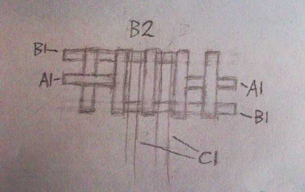 Estoy mostrando esta imagen otra vez porque muestra parte de cómo funciona la alternancia mech de gatillo. Observe las varillas con A1. Están en enfrente de lados (izquierdos y derecho) y en los extremos opuestos (frente y detrás de este punto de vista). Durante el funcionamiento de la pistola de la izquierda se encuentra un bloque del disparador, a continuación, el bloque lo desbloquea y el carrete gira 180 grados, momento en el que el otro bloque a la derecha de los bloques de la pistola la varilla etiquetada A1 a la derecha. El sistema de repeticiones hacia adelante y hacia atrás para conseguir fuego semiautomático.