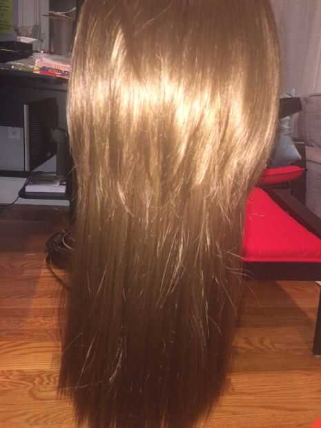 Cuando haya terminado, usted notara que su peluca es mucho más gruesa. Usted puede ver, especialmente con el flash, las dos diferentes capas de pelo.