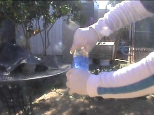Cuando la víctima intenta abrir la botella, no será capaz, porque la tapa estará sellada con el pegamento aplicado en ella.