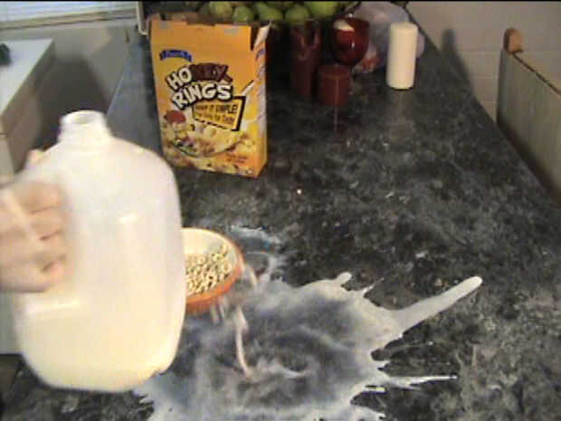 Esta broma es inofensivo pero molesto, ya que a nadie le gusta limpiar derrame líquidos sobre el piso, especialmente leche no, que tienden a ser pegajosos.