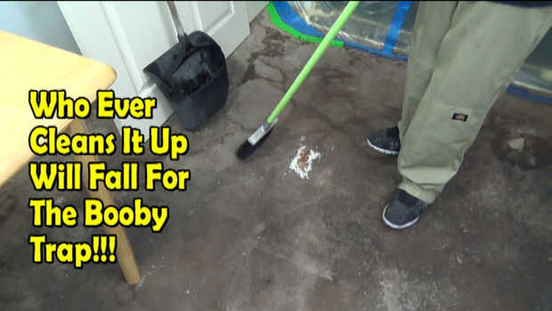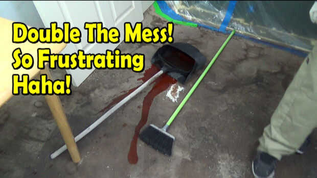 Naturalmente te agarra el recogedor para barrer todo pero en cuanto fijan el recogedor el agua derrame causando un gran desastre.