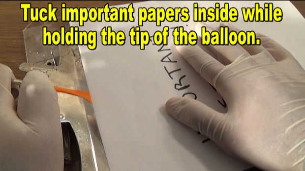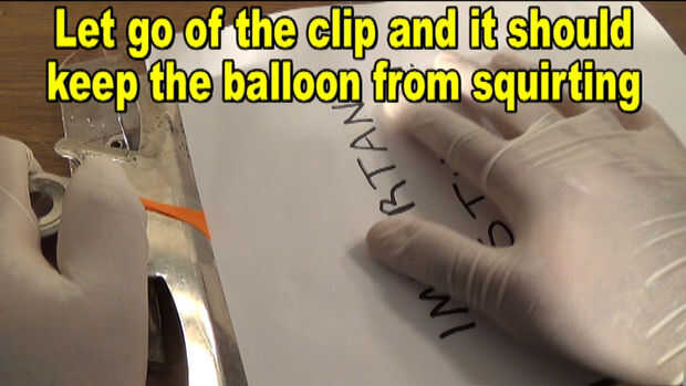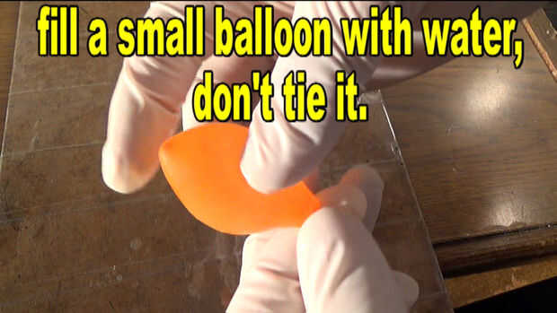 * Añadir agua al balón pero no llenarlo demasiado. (opcional - agregue el polvo de color para hacer un lío más sensible)