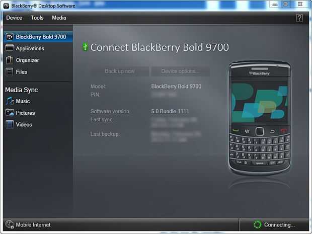 Una vez que se ejecuta el Software de BlackBerry en su computadora, conectar el teléfono BlackBerry mediante un cable USB.