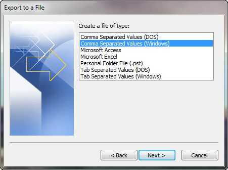 Paso 4: Seleccionar "(Windows) de valores separados por comas" y haga clic en "Siguiente"