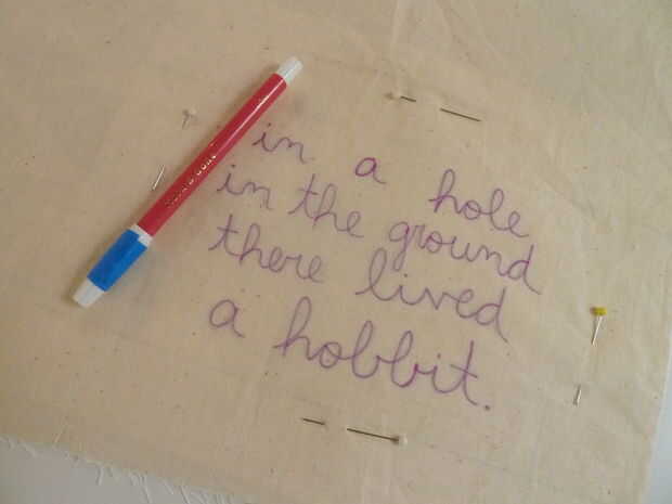 Ahora va sobre la tela, trazar el diseño en la pluma soluble en agua. Trate de usar como luz de una mano como usted puede - si vas loco es más sólo que tienes que lavar luego.
