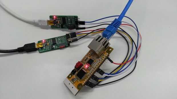 Por favor, conecte un cable LAN y el adaptador de UART2USB