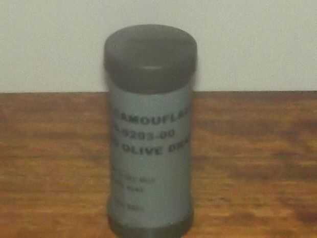 Para pintar su cara uso camuflaje pintura de una tienda de excedentes del ejército.  La pintura de la cara con negro en un extremo y verde en el otro.  Aplicar primero la pintura negra en la cara como base.  Después su cara entera está cubierta de pintura negra utilice la pintura de cara verde para tapar la pintura de cara negra.  La pintura de la cara negra proporcionará una base oscurezca perfecta para el verde.  Los dos colores combinados emparejarán perfectamente el color verde del ejército.