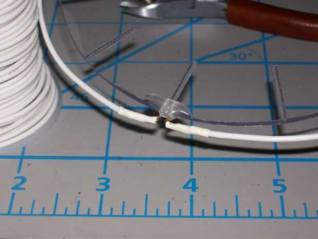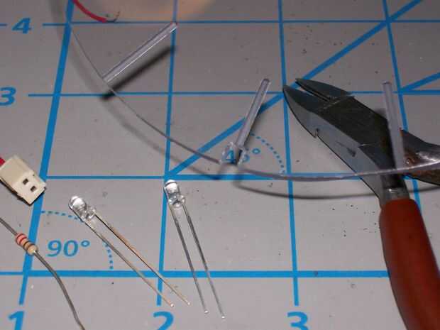 Cada LED se inserta en la ranura corta y asegurar con pegamento caliente.