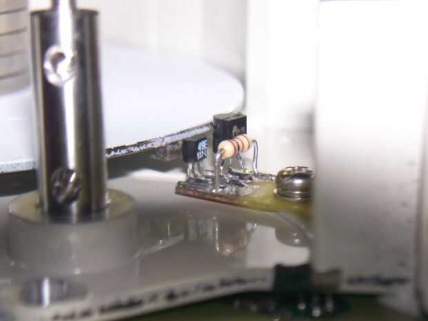 Hall sensor, MOSFET y lastre resistencia están montados sobre un PCB adicional pequeño que se monta en nivel con la superficie inferior del plato de índice.