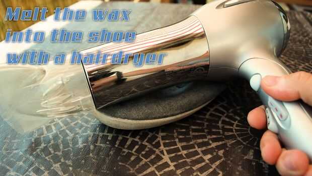 Tomar un secador de pelo y derretir la cera en la superficie de los zapatos.