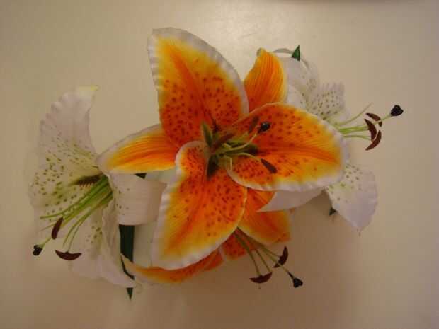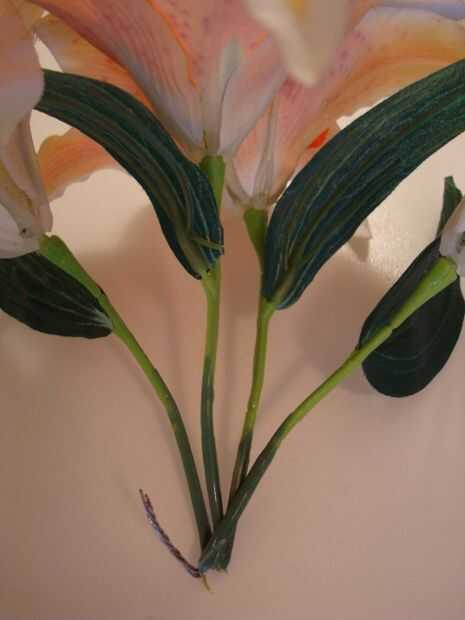 No quería que alguien mira un vaso vacío, usé unas flores de plástico. Es un jarrón bastante amplio así si es necesario cubrir con flores que necesitarás por lo menos 8 grandes, como el mío. Pero yo quería espacio para comprobar mis dispositivos sin lirios recibe en el centro y... tos!-mantener los costos bajos, usé sólo cuatro.