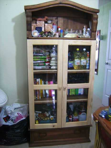 Las puertas estan hechas de madera de pino pecado tratamiento con dos ventanas con vidrio; cada una colocadas con bisagras ocultas, como las se usan en las puestas de los gabinetes de cocina. Las puertas estan colocadas y despues...