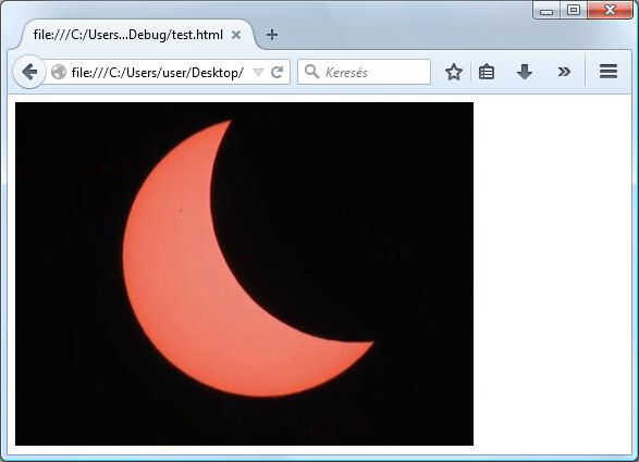 Para transmitir la imagen USB en un sitio web, primero es necesario instalar un servidor Web (Apache por ejemplo). Después de haber logrado este requisito y se ha aplicado con éxito la aplicación, haga clic en el botón abrir en navegador. Como se muestra en la imagen adjunta, la imagen de la cámara (que es el hermoso eclipse solar) aparecerá en su navegador web. Verá que se generará el archivo 'test.html'. Para ser capaces de transmitir la imagen de la cámara, vamos a copiar y pegar este archivo HTML a la carpeta/var/www de tu servidor Web.