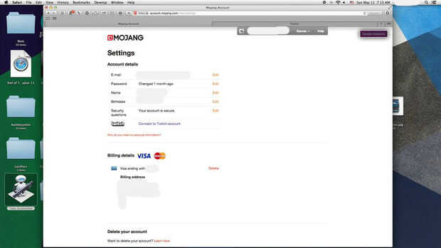 Haz clic en el botón de la 'conexión a twitch cuenta' en la configuración de mojang vincular tus cuentas de contracción y mojang.