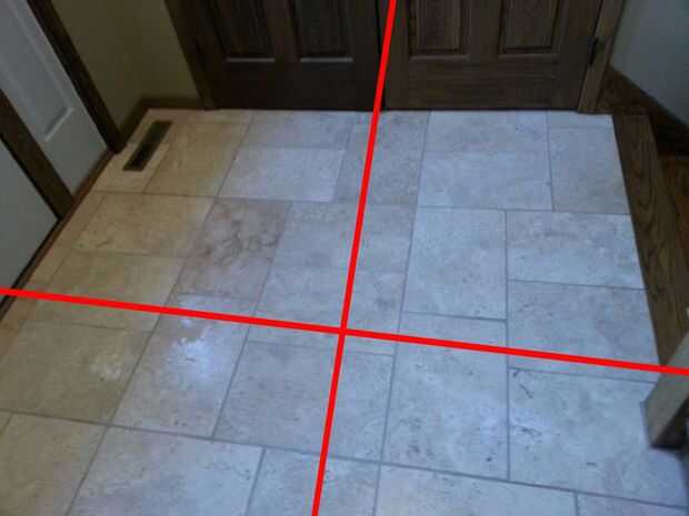 Aquí es donde realmente empezamos trapeado. Para esto vas a querer sumergir la fregona en el cubo y luego mientras se mantiene la cabeza de la fregona en el cubo escúrralo. Sacar hacia fuera cuánto va a tomar un poco de ensayo y error. Que desea obtener para que después de ejecutar la fregona por el suelo, el piso parece húmedo, pero no hay ningún charcos de agua. Mentalmente dividir su piso en secciones de aproximadamente 5 pies por 5 pies inicio con el más alejado de la entrada a la sala. Por ejemplo, en la imagen de arriba la planta se divide en cuatro secciones y probablemente le gustaría comenzar con la parte superior izquierda uno. Si usted está usando un trapeador de esponja tienes que cubrir la zona haciendo pasadas rectas como lo haría si se aspirar. Si está utilizando una fregona banda o cadena, a continuación, usted querrá usar un movimiento circular como si se hiela un pastel.
