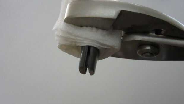 Alternativamente, usted puede cortar la carcasa abierta con un cuchillo o rotatorio herramienta. Si haces esto, entonces debes ser muy cuidado de no cortar demasiado profundamente o corre el riesgo de golpear el chip.