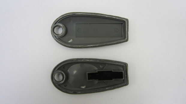 El mejor método que encontré para la apertura de este tipo de vivienda es para la costura del pegamento por apretándola. Envuelve el llavero en una servilleta para evitar rayarlo. Entonces lo apreté en un extremo con una pinza perpendicular a la costura. Esto causó que las dos mitades separar un poco al final. Pegué un destornillador en la abertura para sostener las dos mitades separadas. Entonces repetí este proceso bajando del lado de la llave hasta que las dos mitades donde mayormente separados. En este punto pude sólo tire aparte el resto del camino con mis dedos.