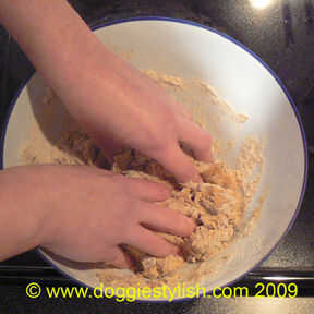 Mezclar bien los ingredientes. Me gusta usar mis manos, son la mejor herramienta que tienes en la cocina! La masa resultante será agradable y firme.